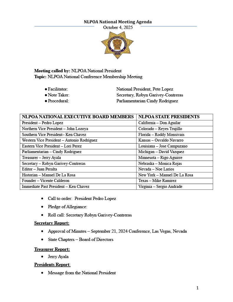 This document outlines the 2025 National Convention Agenda. Click here to view:
