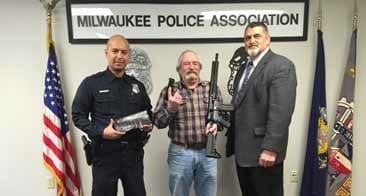 Congratulations to George Baldus (retired) on your successful attendance of the NLPOA Milwaukee Chapter fund raiser in support of PO Manney. NLPOA Milwaukee Chapter President Ayala, much appreciation to you and your organization for a true display of fraternal beliefs.  The picture depicts raffle prizes proudly won